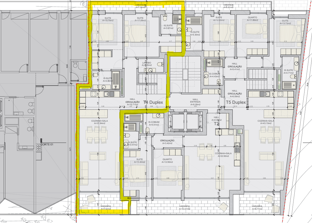 Apartamento T4 (Duplex) no Condomínio Privado “LUNNA”, em Loures 6º Piso Inserido em Condomínio de Luxo, num prédio com 7 pisos e 20 apartamentos de tipologia T2 a T5. Destaca-se pelos seus acabamentos com materiais de elevada qualidade e pelas comodidades que oferece, nomeadamente Garagem, Jardim e Ginásio comuns e Rooftop com Piscina aquecida com vista panorâmica, garantindo o conforto e bem-estar aos seus moradores. O Apartamento é um Duplex, dispõe de 195,77 m² de área e está estruturado da seguinte forma: Piso 0 - Hall de entrada com 10,71m2; - Sala em open space com a Cozinha, totalmente equipada, com 37,84m2 e acesso a Varanda com 7,52 m²; - Suite 1 com casa de banho completa com duche com 20,95m2; - Suite 2 com casa de banho completa com duche com 20,62m2; - Lavabo Social com 3,25 m2 - Varanda com 7,56m2, com acesso pelas duas Suites. Piso 1 - Hall com 2,35 m2; - Suite 3 com casa de banho completa com duche com 27,49 m2; - Suite 4 com casa de banho completa com duche com 22,37m2; - Pátio com 8,21 m2, com acesso pelas Suite 4. O apartamento dispõe das seguintes características e acabamentos: - Estacionamento em Box na garagem colectiva do prédio; - Ar condicionado; - Estores térmicos elétricos; - Iluminação LED; - Painéis Solares (águas quentes com termossifão e termoacumulador); - Pré-instalação para painéis fotovoltaicos; - Caixilharia com corte térmico; - Chão flutuante em carvalho. - Carpintarias lacadas a branco; - Cerâmicos Margrés Linha Calacata; - Torneiras Bruma; - Portas de segurança Dierre; - Aspirador robot e Aspirador vertical; - Wallbox para carregamento de veículos elétricos; - Piscina aquecida comum com vista panorâmica no rooftop do edifício; - Ginásio comum com terraço; - Inserido em prédio com dois elevadores; - Classificação Energética: A. O Apartamento dispõe de uma óptima exposição solar. Localiza-se no centro de Loures, numa zona residencial tranquila, a poucos minutos de diversos supermercados, farmácias, bancos, do Hospital Beatriz Ângelo e de diversos tipos de comércio e serviços. Com fácil acesso às principais vias, designadamente à A8, A9, CRIL, IC22, CREL, Ponte Vasco da Gama, a cerca de 10km do Aeroporto e 15 km de Lisboa. Em breve terá também a futura estação de metro de Loures, a poucos minutos de distância. Previsão de Conclusão: ano 2027. Agende a sua visita e venha conhecer este fantástico Apartamento! Fazemos Partilhas com outras Agências Imobiliárias.