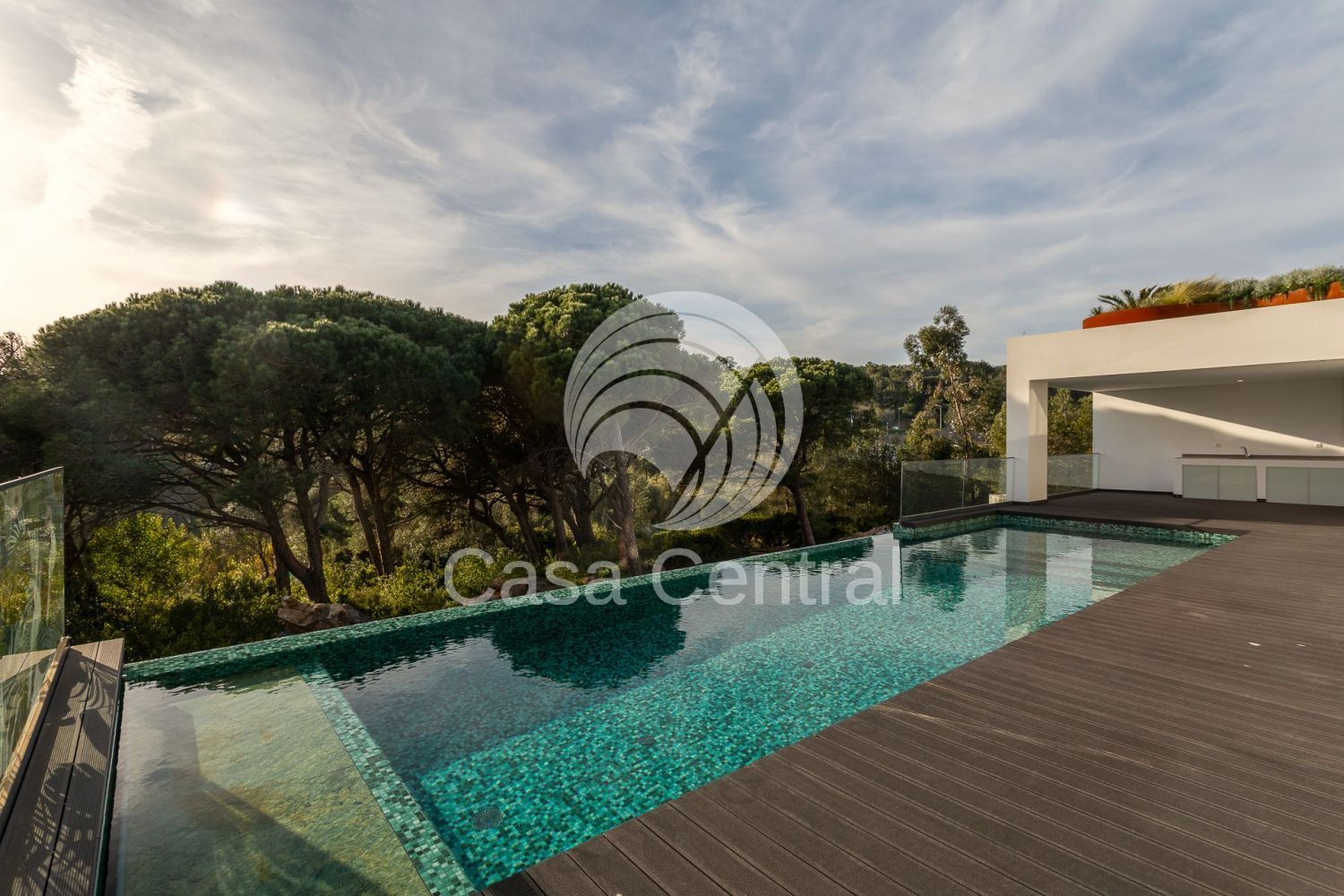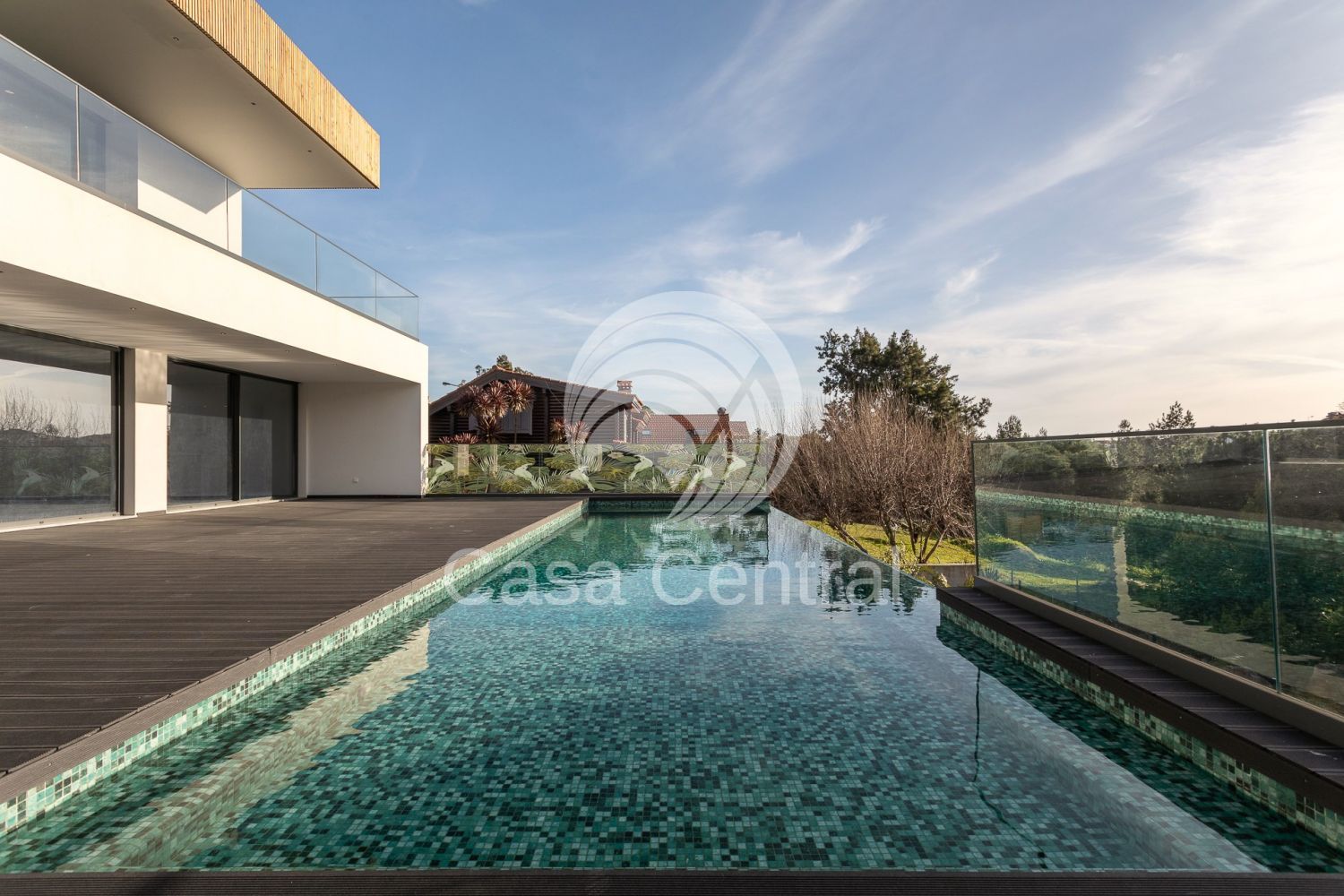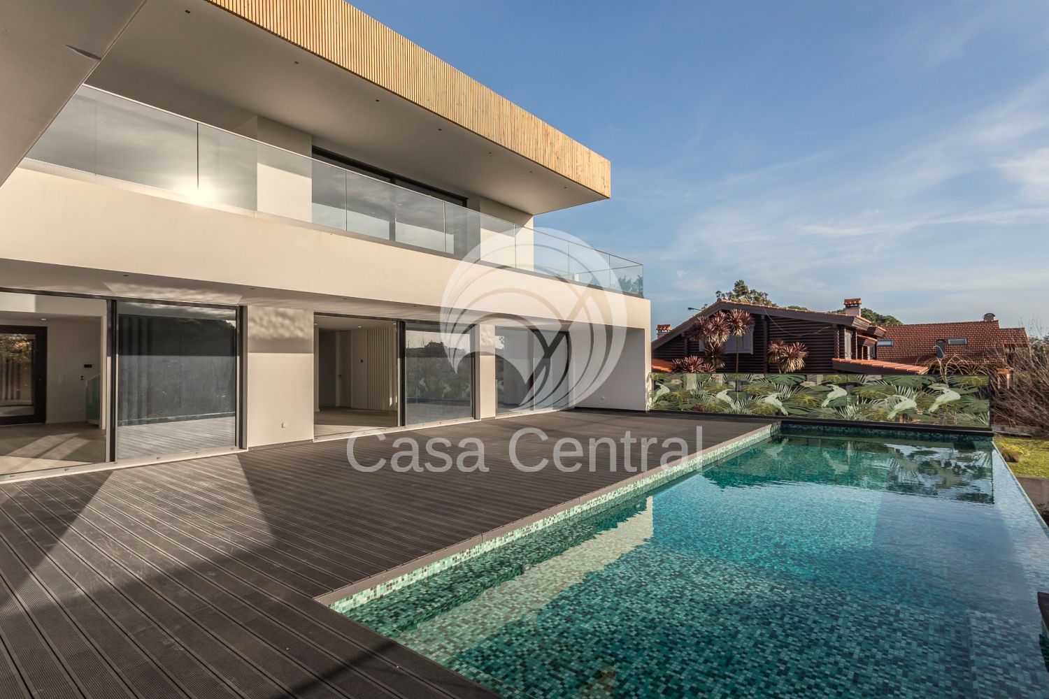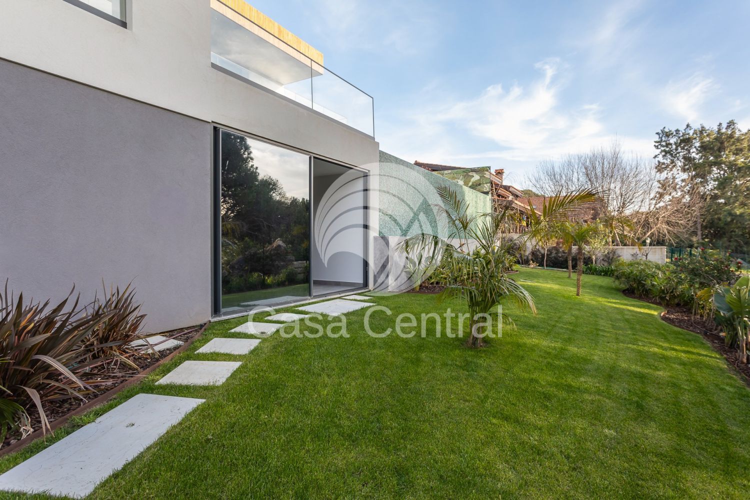 Moradia Contemporânea T5 + 1 em Cascais - Abuxarda Com uma localização privilegiada, numa zona residencial e tranquila, destaca-se pelo seu design moderno, pelas suas amplas áreas, excelente exposição solar e longos envidraçados que garantem uma abundante luminosidade natural, complementadas pelos seus espaços exteriores contemporâneos com uma fantástica infinity pool, envolvidos por uma agradável moldura verde de árvores e natureza. A zona social da Moradia, virada a poente, tem acesso directo ao seu deck e piscina, prolongando a zona social para o exterior, permitindo relaxar, aproveitar o sol e desfrutar de momentos e de refeições ao ar livre. Inserida num Lote de terreno com 934m2. A Moradia é composta por 3 pisos e estruturada da seguinte forma: Piso Térreo: - Hall entrad a - Sala comum muito ampla e iluminada, com acesso directo ao deck, piscina e zona de barbecue, havendo a possibilidade de criar uma zona lounge e uma zona de refeições no exterior - Cozinha moderna totalmente equipada com eletrodomésticos AEG - Suite com closet e acesso ao deck e piscina - Suite com armários embutidos - Casa de Banho social - Escritório Piso 1: - 2 Suites com acesso a Varanda, com vista panorâmica e armários embutidos Piso -1 - Suite - Lavandaria - Sala ampla multiusos com janela com vista subaquática da piscina - Sala de cinema - Sala preparada para sauna/spa - Zona projectada como garrafeira - Sala de arrumos - Sala técnica - Casa de banho completa - Garagem muito espaçosa com capacidade para 4 carros, com 93 m2, portão elétrico e com portas de vidro de acesso ao jardim Jardim Com espaços verdes, Piscina e deck A moradia dispõe ainda de: - Pré-instalação de elevador, facilitando o acesso a todos os pisos; - Painéis solares; - Ar condicionado por conduta; - Estores eléctricos; - Ventilação Central com máquina de purificação de ar Vmc (S&P); - Iluminação geral em led; - Caixilharia em alumínio com corte térmico e acústico; - Vidros duplos; - Rega automática; - Certificação energética A+. A Moradia tem uma óptima exposição solar, sendo a maior parte das divisões, inclusive a sala, cozinha e duas suites principais viradas a Poente. Tem igualmente uma excelente localização, estando localizado: - a poucos minutos de diversas escolas nacionais e internacionais, restaurantes, cafés, clínicas médicas e hospitais, farmácias, supermercados, todo o tipo de comércio e serviços, praias e jardins; - a 2 min de carro da A5 e A16; - a aprox. 5 min de carro da Marginal, Centro de Cascais, Paredão e Praias da Linha de Cascais; - a menos de 10 min. de carro da Beloura, e das Escolas Carlucci American International School of Lisbon e TASIS Portugal International School - a 5 min carro do Cascaishopping; - a 25 min carro de Lisboa. Agende a sua visita e venha conhecer esta Fantástica Moradia! Fazemos Partilha com outras Imobiliárias.