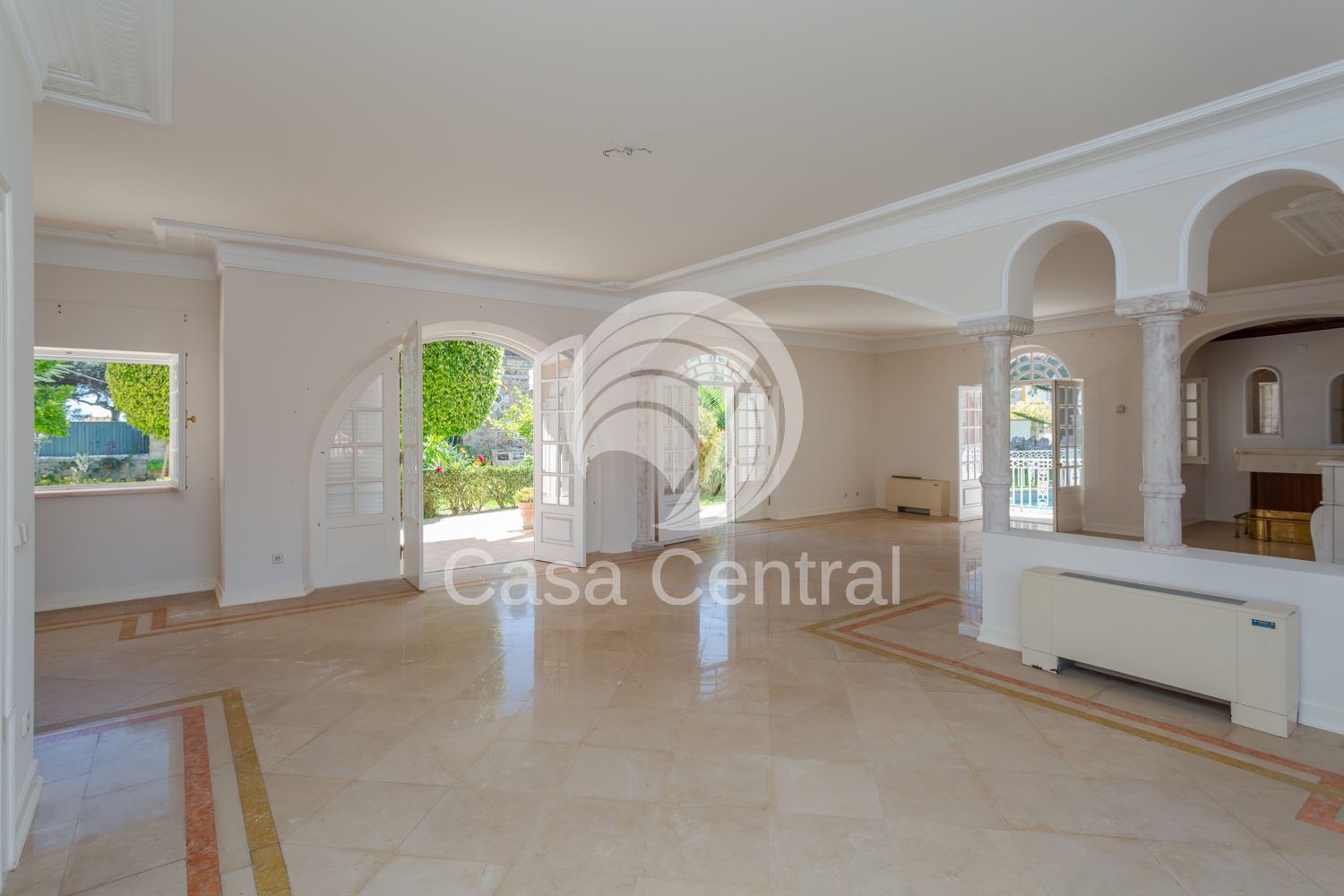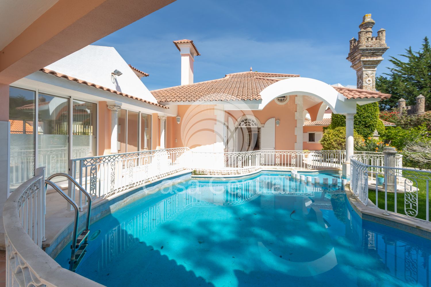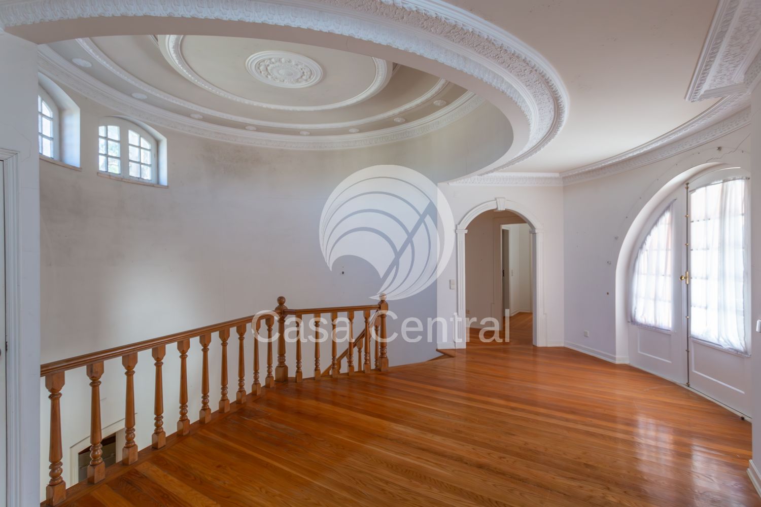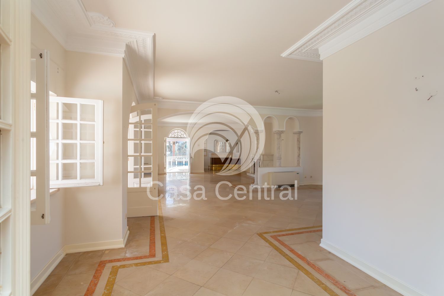 Venha conhecer esta icónica Moradia T7 + 2 no Monte Estoril Localizada numa zona privilegiada e de excelência no coração do Monte Estoril. Esta Moradia dispõe de características únicas, que a tornam numa das mais emblemáticas moradias do Monte Estoril e um dos principais bastiões da memória urbana desta localidade. Cheia de “História” e Charme, a Moradia encontra-se rodeada de Torreões e cercada por uma Muralha única como a de um Castelo. Dispõe de um extenso Jardim, com zonas verdes e Piscina exterior. A Moradia está inserida num Terreno com 1.438,45m2 e possui amplas áreas. Dispõe de 700m2 de Área Bruta de Construção, sendo 600m2 de área bruta privativa e 100 m2 de área bruta dependente e encontra-se estruturada da seguinte forma: R/C com: - Hall de Entrada com chão em pedra mármore e uma escadaria em madeira de acesso ao 1º piso; - Lavabo Social; - Sala Comum de Estar e Jantar com um amplo salão com muita luz, lareira, e com portas de acesso directo ao jardim e piscina, e chão em pedra mármore; - Cozinha; - Lavandaria; - Uma Suite, com casa de banho com duche; - Um Quarto; - Anexo /Apartamento T0, contíguo à Moradia, com porta para a piscina, uma sala ampla com muita luminosidade, cozinha e uma casa de banho completa recentemente renovada. 1ºPiso com: - Hall amplo com chão em madeira (soalho corrido), com tecto lindíssimo ricamente trabalhado e com acesso a uma Varanda com vista para o Jardim; - Duas Suites, com Casas de banho completas; - Três Quartos; - Casa de banho completa de apoio aos quartos; - Arrecadação. * Todo o piso do 1º andar é em soalho de madeira corrido Piso -1 (com acesso pelo Jardim) com: - Garagem para cinco automóveis; - Arrecadação/Casa das Máquinas; - WC. - Anexo, nas traseiras da Moradia, ao nível do Piso – 1, com duas divisões, uma WC e saída directa para o Jardim. Jardim em redor da casa com: - Piscina; - Casa de Porteiro; - Zona de estacionamento com piso em calçada. A Moradia é muito luminosa e dispõe de uma óptima Exposição Solar, sendo as divisões principais da casa viradas a Sul/Poente. Localizada numa zona residencial, muito tranquila e a cerca de: - 10 min. a pé do Paredão e das Praias do Monte Estoril e Estoril; - 5 min. de carro da Escola Salesianos do Estoril; - 5 min. a pé da Santo António International School; - 10 min. de carro do Centro de Cascais; - 10 min. da Deutsche Schule Lissabon; - 15 min. de carro da Beloura, das Escolas Carlucci American International School of Lisbon e TASIS Portugal International School; - Com fácil acesso à Marginal, à A5 e A16. Agende a sua Visita e venha conhecer esta Fantástica Moradia! Fazemos Partilhas com outras Imobiliárias.