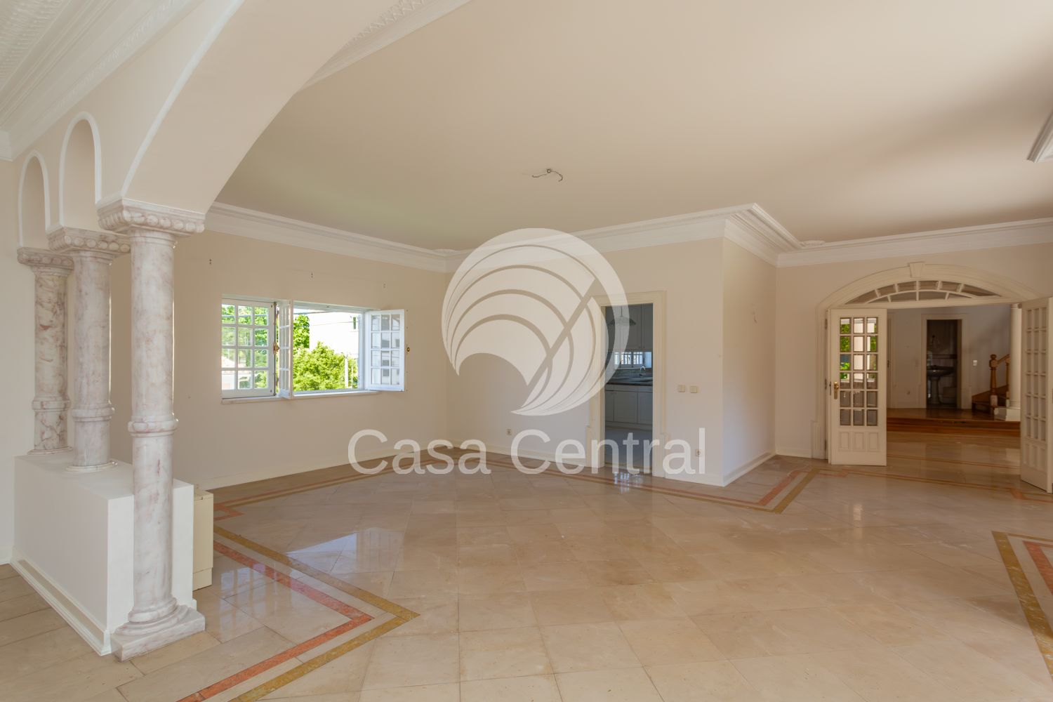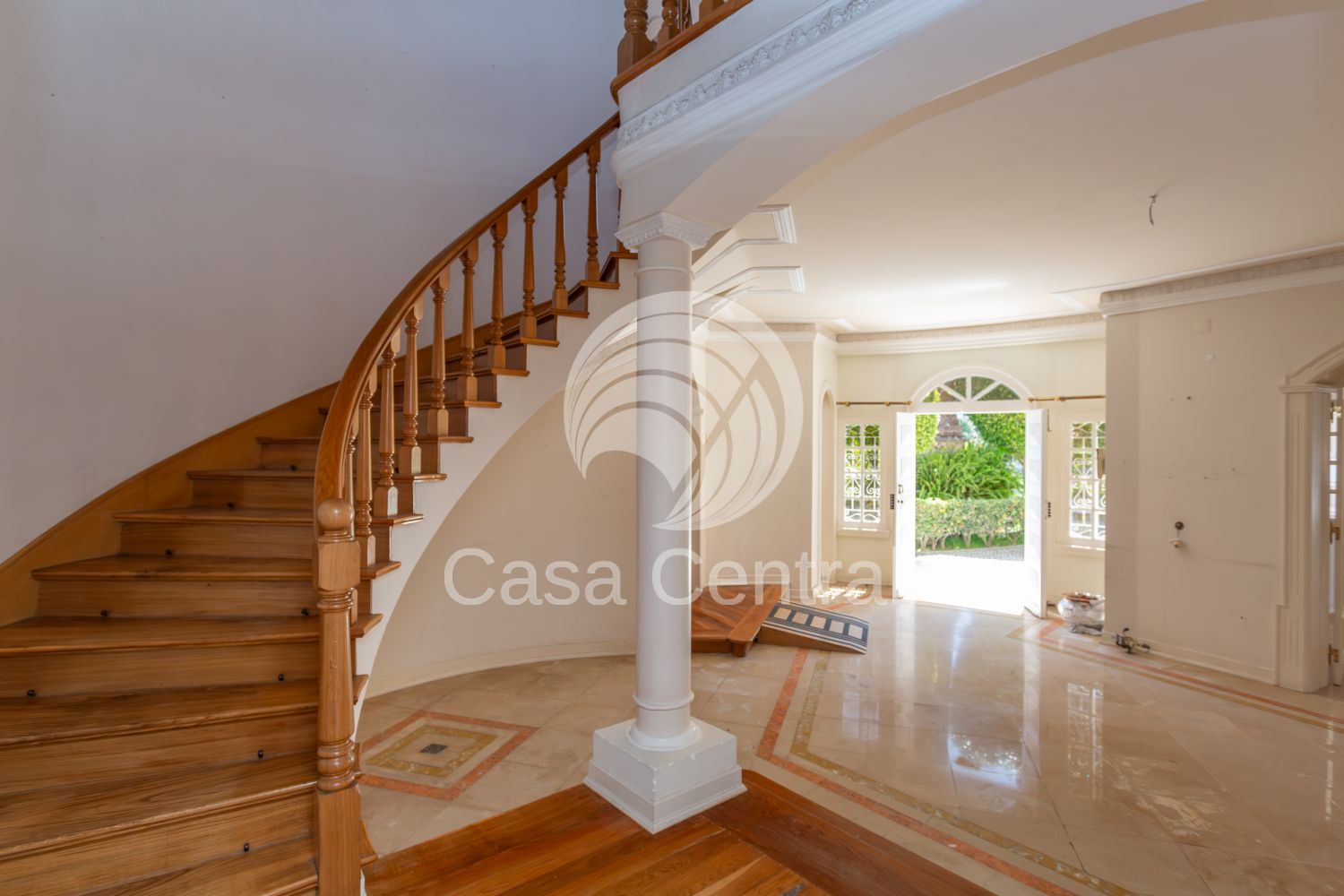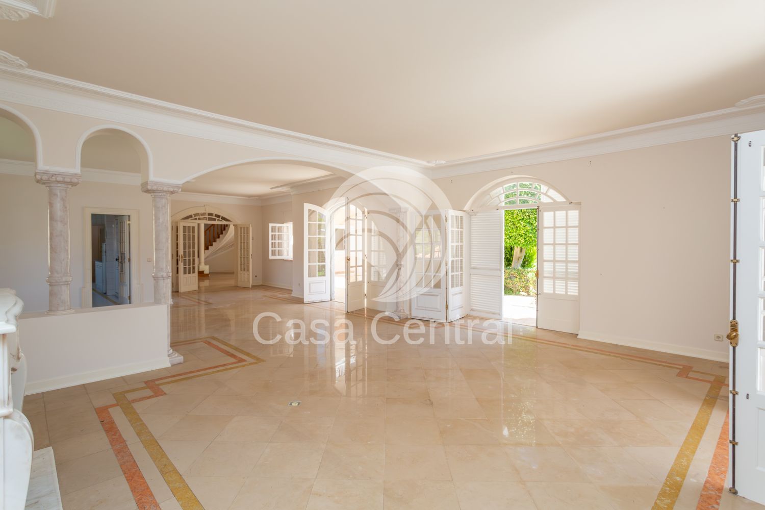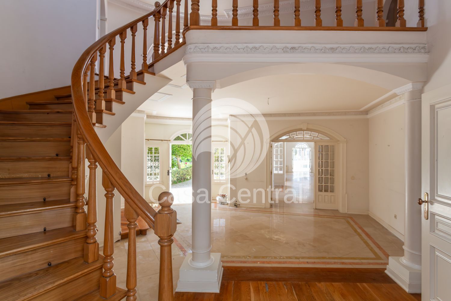 Venha conhecer esta icónica Moradia T7 + 2 no Monte Estoril Localizada numa zona privilegiada e de excelência no coração do Monte Estoril. Esta Moradia dispõe de características únicas, que a tornam numa das mais emblemáticas moradias do Monte Estoril e um dos principais bastiões da memória urbana desta localidade. Cheia de “História” e Charme, a Moradia encontra-se rodeada de Torreões e cercada por uma Muralha única como a de um Castelo. Dispõe de um extenso Jardim, com zonas verdes e Piscina exterior. A Moradia está inserida num Terreno com 1.438,45m2 e possui amplas áreas. Dispõe de 700m2 de Área Bruta de Construção, sendo 600m2 de área bruta privativa e 100 m2 de área bruta dependente e encontra-se estruturada da seguinte forma: R/C com: - Hall de Entrada com chão em pedra mármore e uma escadaria em madeira de acesso ao 1º piso; - Lavabo Social; - Sala Comum de Estar e Jantar com um amplo salão com muita luz, lareira, e com portas de acesso directo ao jardim e piscina, e chão em pedra mármore; - Cozinha; - Lavandaria; - Uma Suite, com casa de banho com duche; - Um Quarto; - Anexo /Apartamento T0, contíguo à Moradia, com porta para a piscina, uma sala ampla com muita luminosidade, cozinha e uma casa de banho completa recentemente renovada. 1ºPiso com: - Hall amplo com chão em madeira (soalho corrido), com tecto lindíssimo ricamente trabalhado e com acesso a uma Varanda com vista para o Jardim; - Duas Suites, com Casas de banho completas; - Três Quartos; - Casa de banho completa de apoio aos quartos; - Arrecadação. * Todo o piso do 1º andar é em soalho de madeira corrido Piso -1 (com acesso pelo Jardim) com: - Garagem para cinco automóveis; - Arrecadação/Casa das Máquinas; - WC. - Anexo, nas traseiras da Moradia, ao nível do Piso – 1, com duas divisões, uma WC e saída directa para o Jardim. Jardim em redor da casa com: - Piscina; - Casa de Porteiro; - Zona de estacionamento com piso em calçada. A Moradia é muito luminosa e dispõe de uma óptima Exposição Solar, sendo as divisões principais da casa viradas a Sul/Poente. Localizada numa zona residencial, muito tranquila e a cerca de: - 10 min. a pé do Paredão e das Praias do Monte Estoril e Estoril; - 5 min. de carro da Escola Salesianos do Estoril; - 5 min. a pé da Santo António International School; - 10 min. de carro do Centro de Cascais; - 10 min. da Deutsche Schule Lissabon; - 15 min. de carro da Beloura, das Escolas Carlucci American International School of Lisbon e TASIS Portugal International School; - Com fácil acesso à Marginal, à A5 e A16. Agende a sua Visita e venha conhecer esta Fantástica Moradia! Fazemos Partilhas com outras Imobiliárias.